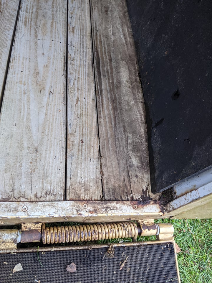 The ramp is currently quite heavy, but definitely manageable for one person to lift and lower; I would recommend replacing the springs for a more effortless experience.